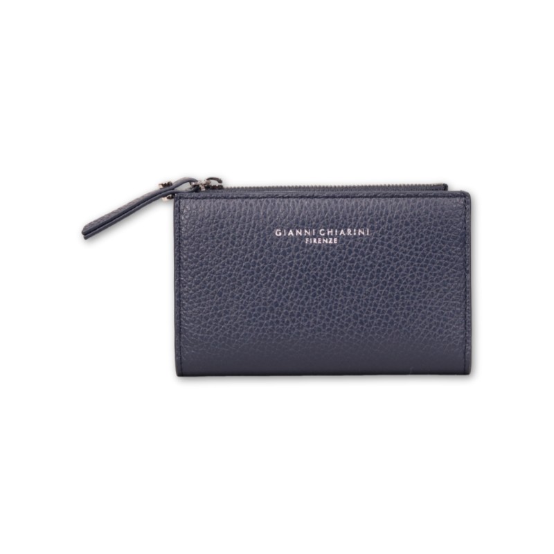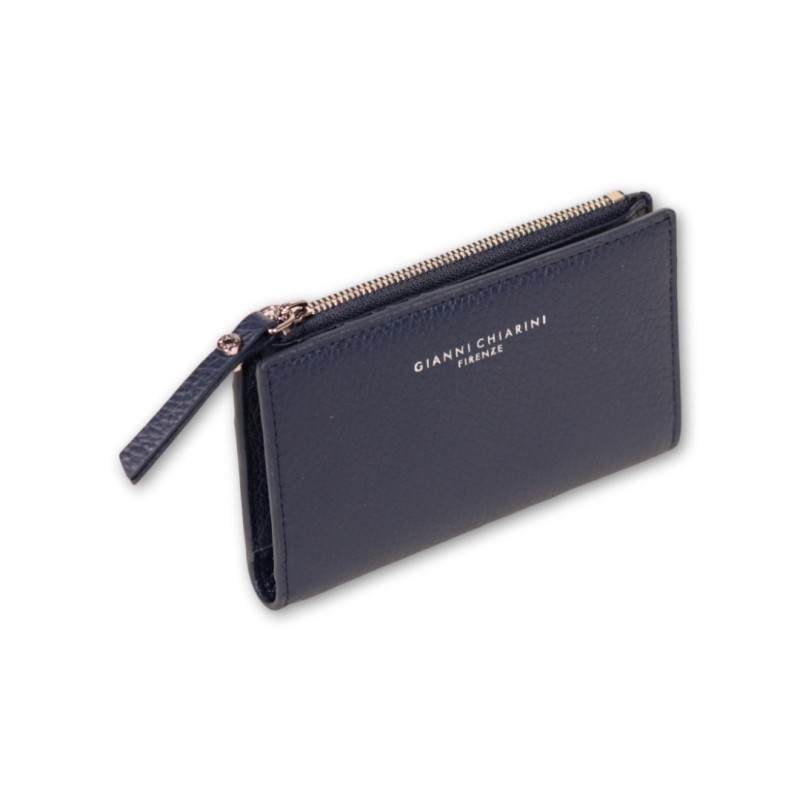 The wallet by Gianni Chiarini Firenze is made of soft hammered leather. It features a zip closure with a matching zip pull, and an additional internal snap closure. Inside, it features several flat multipurpose pockets.