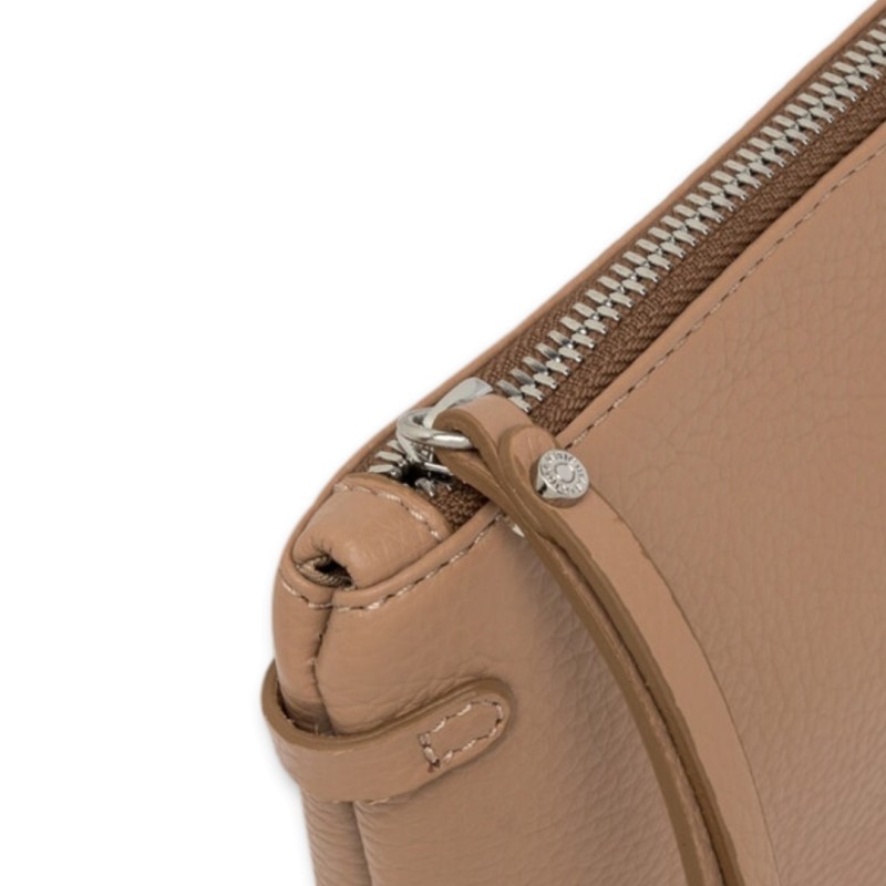 Carried by hand or on the wrist, the Hermy clutch by Gianni Chiarini Firenze is crafted from premium hammered leather. Youthful and playful, it features a contrasting zipper and a thin removable shoulder strap. Ideal for completing casual outfits, but also perfect for an elegant evening.