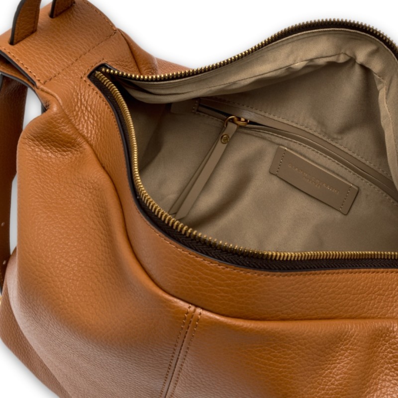 Guia is the new line by Gianni Chiarini Firenze, practical and essential, characterized by soft lines. Ideal for adding a sporty touch to casual everyday looks. Crafted from hammered leather and embellished with metallic elements that give it a touch of sparkle, it features a spacious compartment.