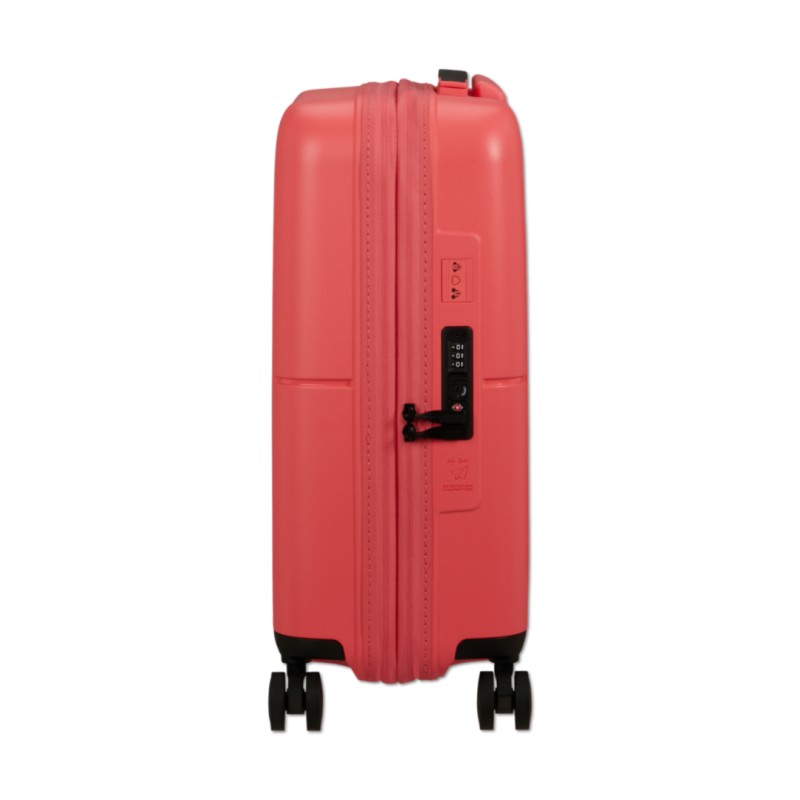 American Tourister's new line features a unique design with a mix of glossy and sandblasted textures inspired by geometric lines that create a play of light and increase scratch resistance. Customize it with the stickers inside the suitcase.
