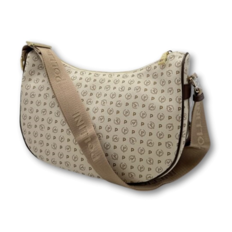 Hobo bag from the Heritage PVC collection. The iconic all-over pattern lends an elegant and timeless allure. The Pollini logo ribbon runs along the side of the bag, doubling as a shoulder strap.