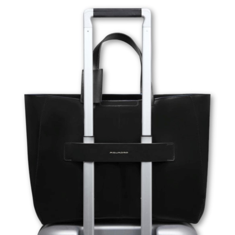 15.6" leather laptop shopping bag with compartment for 12.9" iPad®Pro, shockproof and RFID protection and pocket for AirPods®