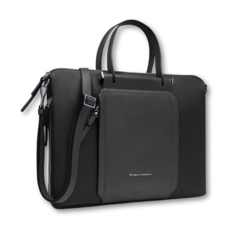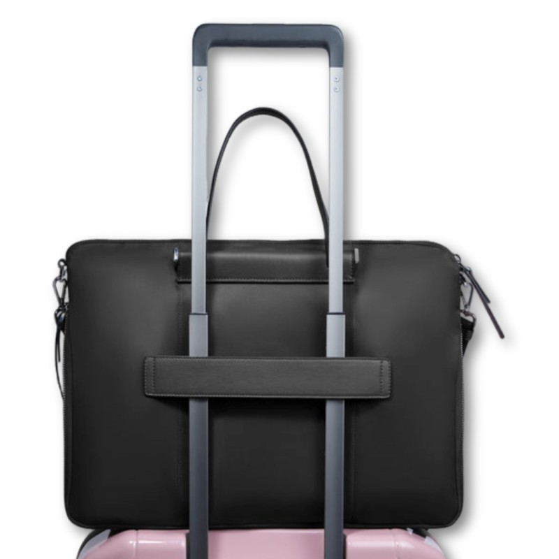 Slim women's 15.6" laptop and iPad® bag in recycled fabric and leather with shockproof and RFID protection, expandable