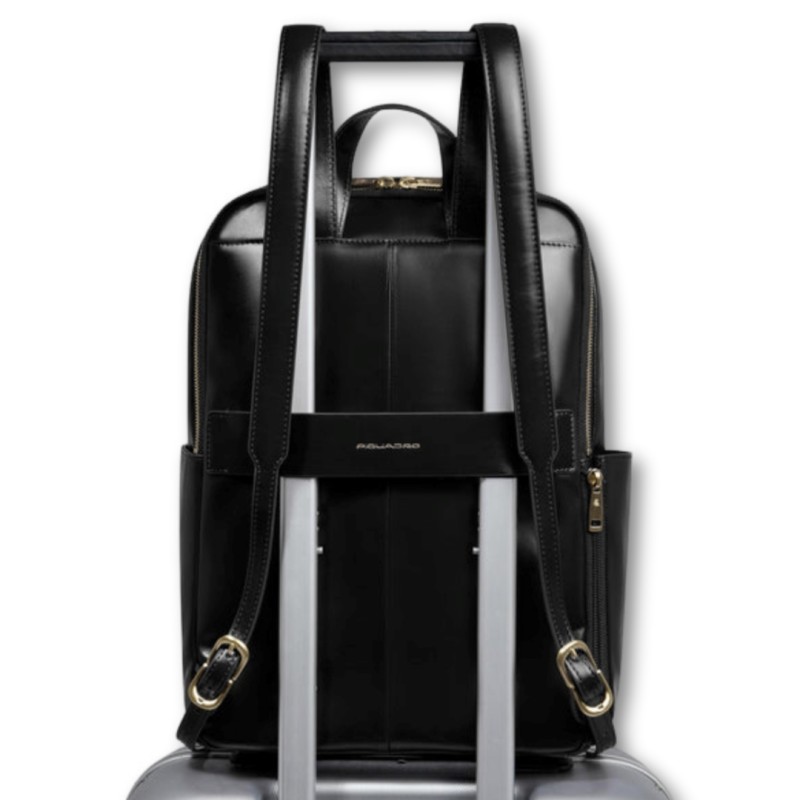 Women's leather backpack for 14" laptop and iPad® with shockproof and RFID protection, pockets for AirPods® and water bottle