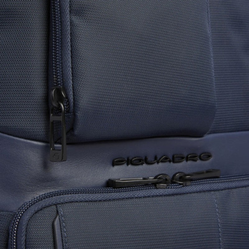Leather and fabric travel backpack for laptop and iPad® with pockets for AirPods®, bottle and CONNEQU, shockproof and RFID protection