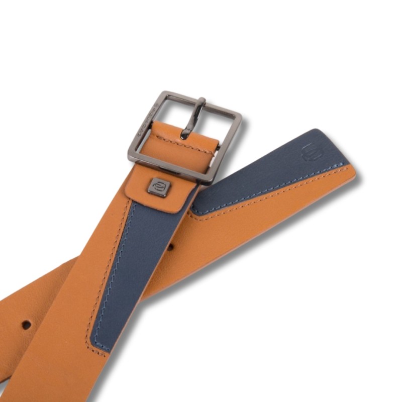 Men's belt with Hakone pin buckle in leather with logo lettering engraved in the buckle. Single low relief logo emblem size 125