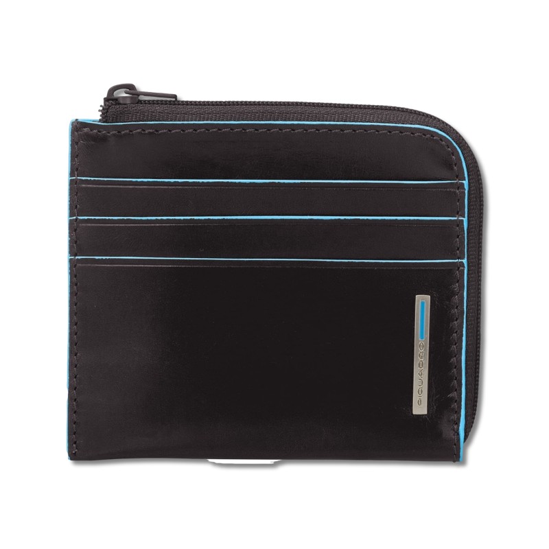 Porta monete piatto con zip superiore e 6 slot porta carte di credito, tre su un lato e tre sull'altro