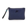 Bustina in morbida pelle nappa, internamente foderata in tessuto turchese, è dotata di laccetto per portarla al polso. Comoda da tenere in borsa come dortadocumenti, diventa molto bella anche portata a mano per uscire in velocità. La chiusura è con zip. Dimensioni: 18 x 13,5 x 1 cm.
