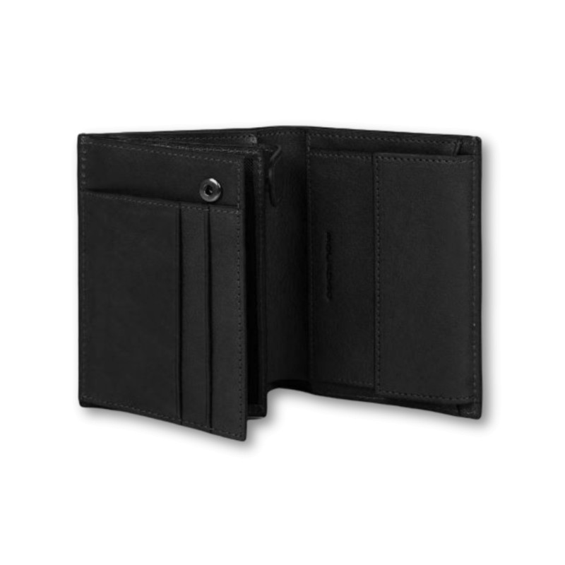 Portafoglio uomo verticale con portamonete, porta carte di credito, due volantini e anti-frode RFID