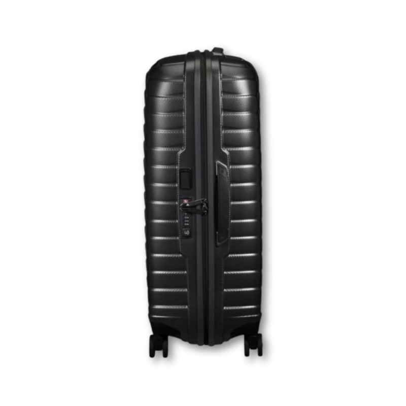 Trolley medio Proxis , ultra leggero(2.7 kg),chiusura con funzione TSA, quattro ruote silenziose per un maggior comfort nel viaggio, comparto inferiore con divisorio ed elastici incrociati. Capacità 75 litri.