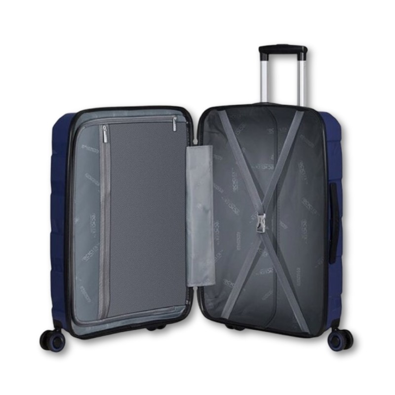 Trolley Air Move realizzata in resistente polipropilene per affrontare qualsiasi tipo di viaggio. E' dotata di doppie ruote che le conferiscono ulteriore stabilità e fluidità nel movimento, mentre l'organizzazione interna con cinghie fermabiti e la serratura a combinazione TSA incassata offrono una sicurezza extra. Peso 3.4 Kg, capacità 61 litri.