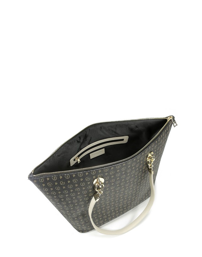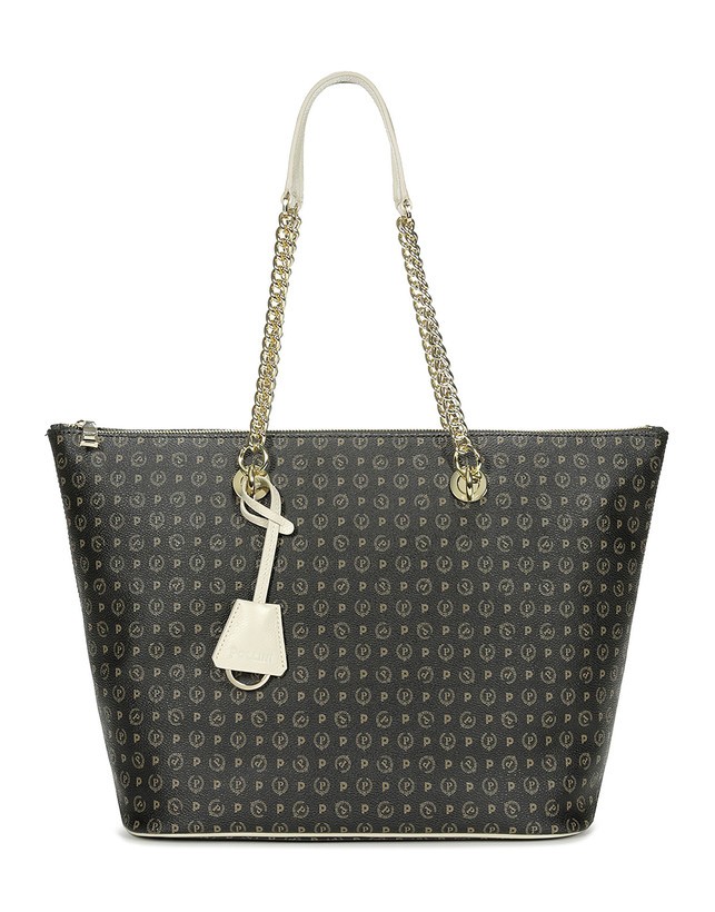 Pratica borsa shopping collezione Heritage Logo classic. L'iconico monogramma all over dona un allure elegante e senza tempo. Doppio manico removibile, per essere portata sia a mano che a spalla. Chiusura con zip. Portachiavi a clochette
