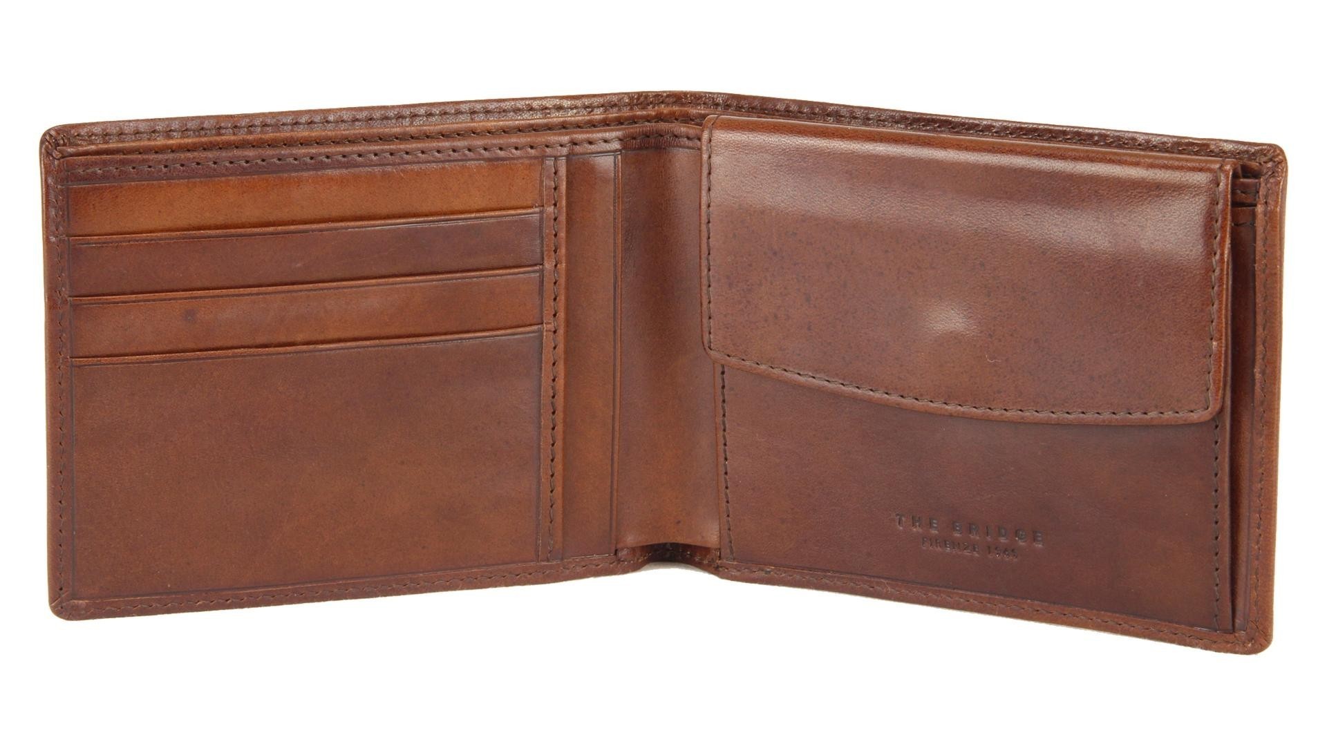 Elegante e discreto, il portafoglio in pelle The Bridge è perfetto per custodire carte di credito, banconote e monete. Sottile e minimale, consente un rapido accesso a carte e documenti e può essere facilmente riposto nella tasca.