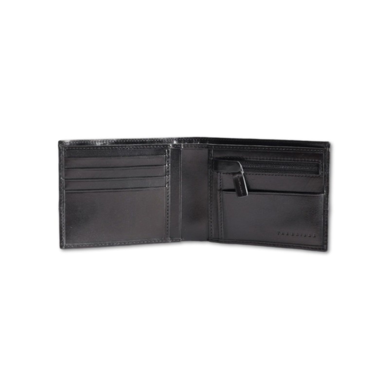 Portafoglio The Bridge Damiano in pelle, all'interno vano banconote, portacarte e portamonete con cerniera. Scritta logo sul frontale.
