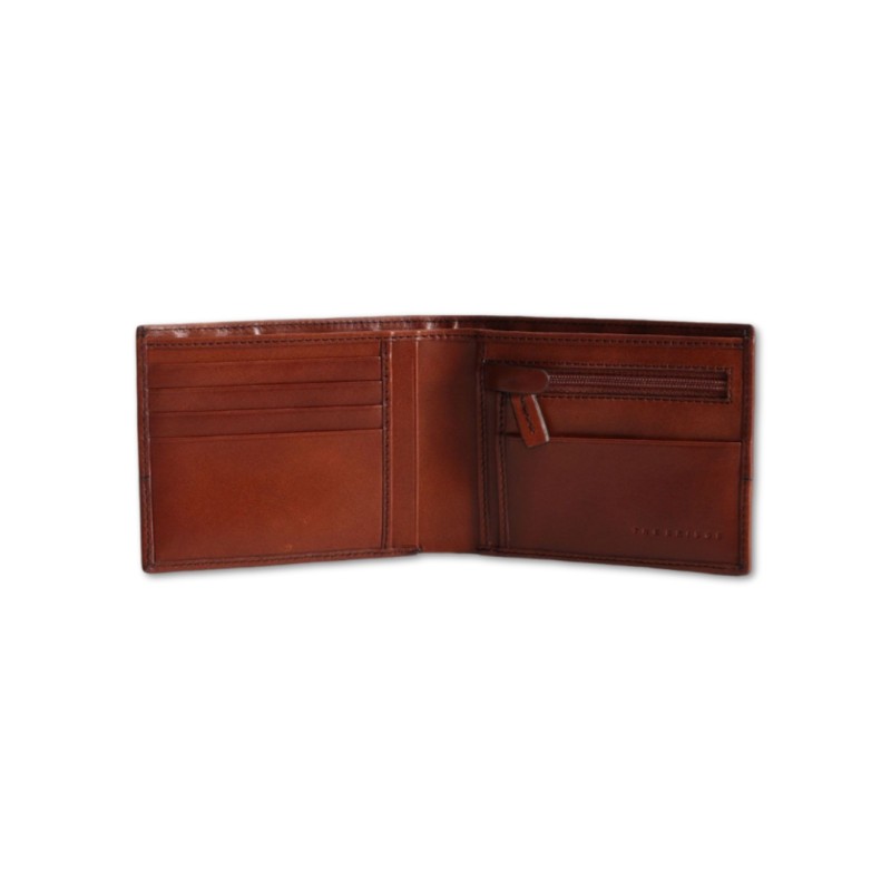 Portafoglio The Bridge Damiano in pelle, all'interno vano banconote, portacarte e portamonete con cerniera. Scritta logo sul frontale.