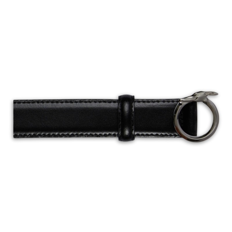 Cintura realizzata in morbida pelle a tinta unita dalla texture liscia. L'accessorio è impreziosito da una fibbia in metallo color argento raffigurante il nuovo logo levriero circolare. Rifinita con un passante singolo.