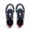 Sneakers stringate Tommy Hilfiger in ecopelle bicolore con flag presente sul lato della scarpa. La particolarità di queste sneakers è data dagli inserti a contrasto di colore blu. La calzata è favorita da una chiusura lampo interna. Il fondo in gomma è antiscivolo.