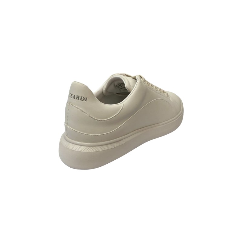 Sneaker low top Yrias realizzata in morbida similpelle a tinta unita. Il modello presenta un inserto posteriore impreziosito dal lettering Trussardi. Chiusura con lacci.