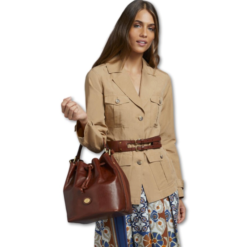 Il secchiello in pelle The Bridge ha un design elegante ed essenziale. Minimale e di classe, si abbina perfettamente ad un outfit casual chic. Concia al naturale e savoir faire artigianale rendono questo prodotto unico.