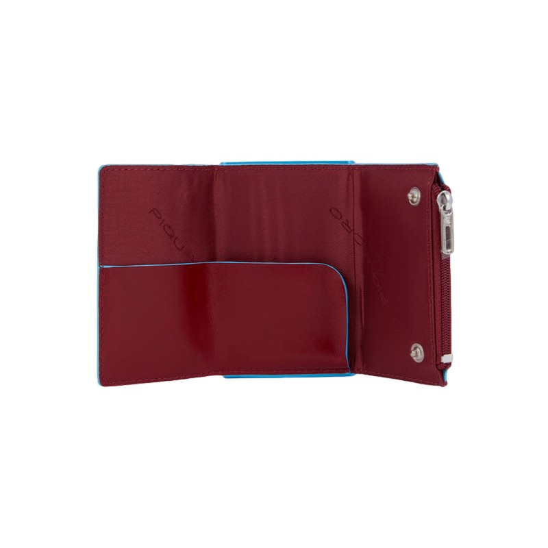Portafoglio compatto per banconote e carte di credito con tasca portamonete, sistema scorrevole e protezione antifrode RFID Blue Square