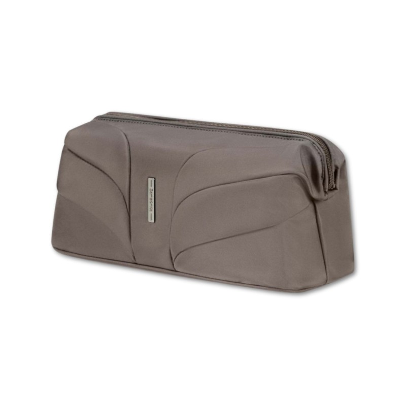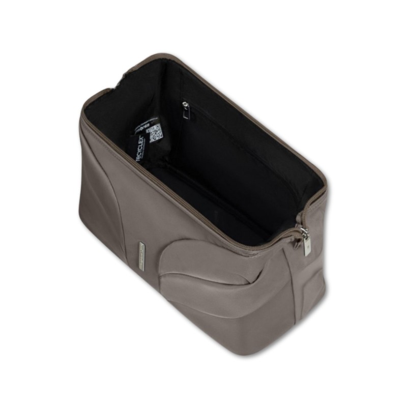 Necessaire realizzato in robusto tessuto riciclato. Ampia tasca principale chiusa da zip. Interno organizzato con tasche per piccoli oggetti.