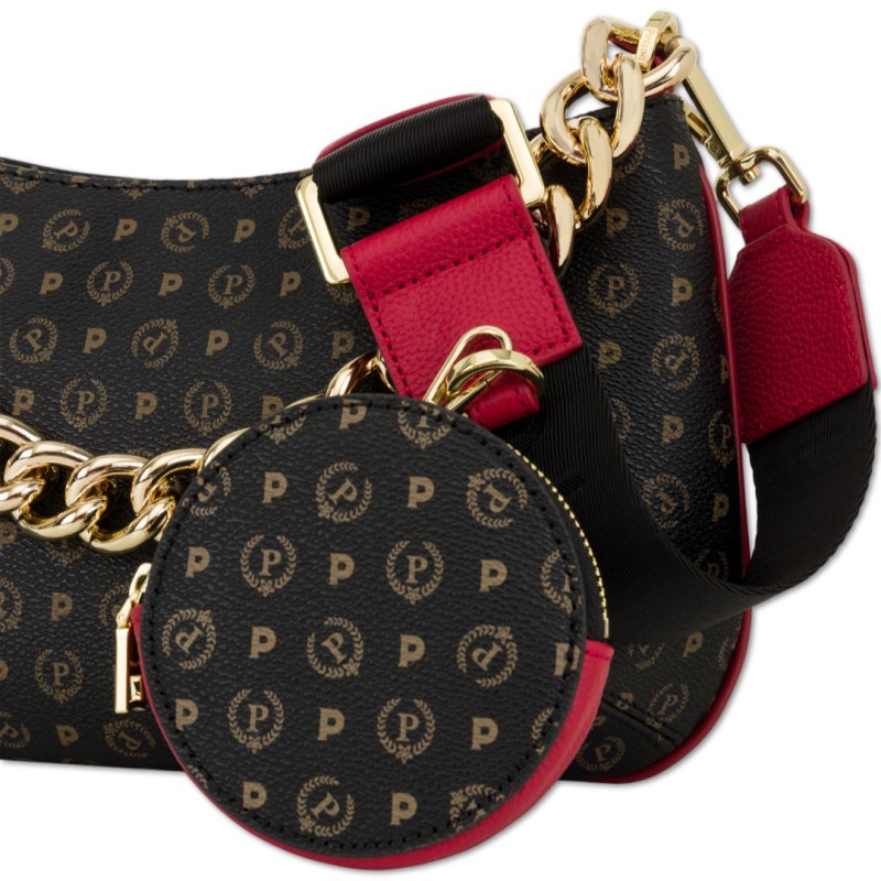 Borsa a tracolla collezione Heritage Logo Classic con stampa iconico monogramma con il logo P-alloro. L'attitude sportiva si combina a un look più sofisticato, grazie alla maxi catena in galvanica oro chiaro che funge anche da manico. La tracolla, realizzata in nastro jacquard logato è impreziosita da una mini pouch amovibile. Il piping a contrasto definisce la geometria della borsa.