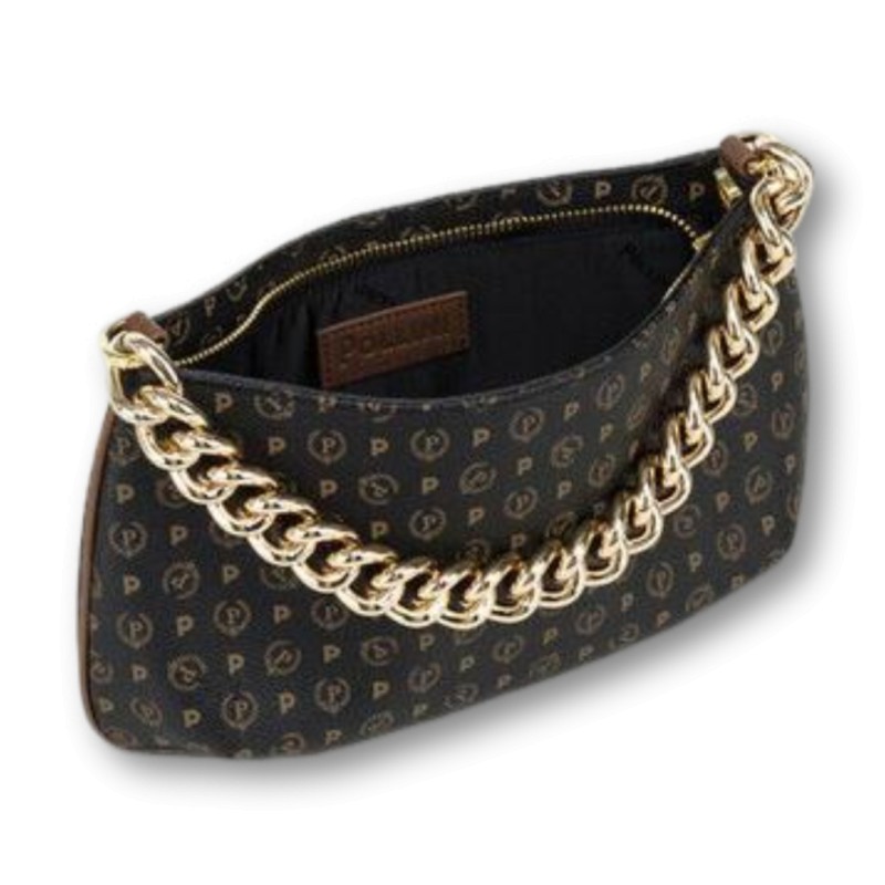 Borsa a tracolla collezione Heritage Logo Classic con stampa iconico monogramma con il logo P-alloro. L'attitude sportiva si combina a un look più sofisticato, grazie alla maxi catena in galvanica oro chiaro che funge anche da manico. La tracolla, realizzata in nastro jacquard logato è impreziosita da una mini pouch amovibile. Il piping a contrasto definisce la geometria della borsa.