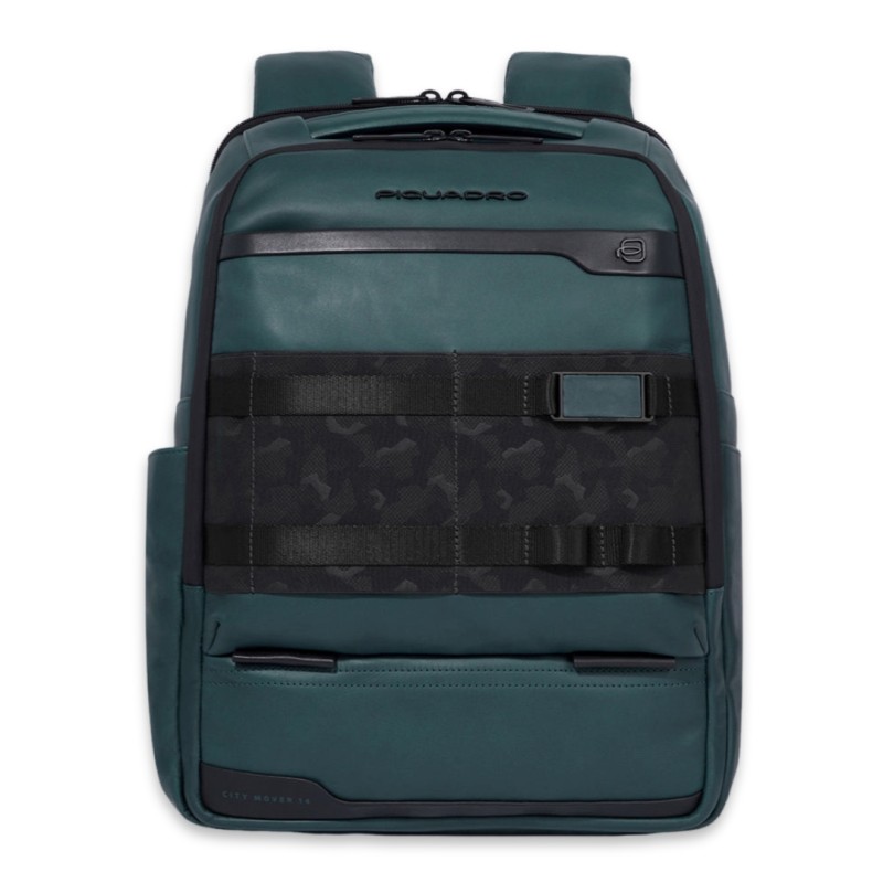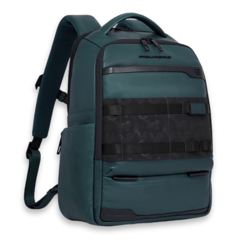 Zaino porta pc e iPad® modulare in tessuto riciclato e pelle con cinghia sternale, aggancio per luce da bici portatile, protezione antiurto e anti frode RFID