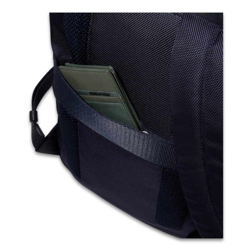 Zaino sottile porta pc e porta iPad® in tessuto riciclato e pelle con tasca per AirPods®, protezioni antiurto e anti frode RFID, espandibile