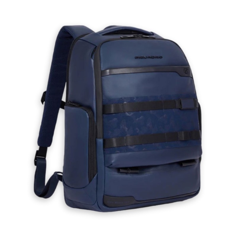 Zaino porta pc e iPad®Pro 12.9" modulare in tessuto riciclato e pelle con cinghia sternale, agganci per luce da bici e per caschetto, protezione antiurto e antifrode RFDI