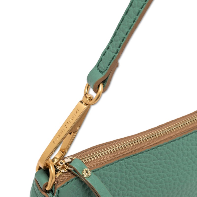 Semplice ed elegante la borsa Brooke by Gianni Chiarini Firenze è realizzata in pelle grana maxi. Arricchita dalla chiusura a zip e dal dettaglio del moschettone del manico removibile. Dotata di una tracolla extra che la rende adatta ad un utilizzo daily.