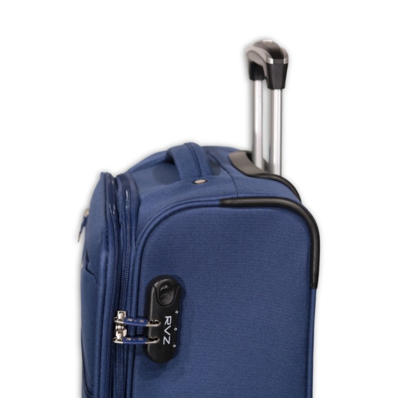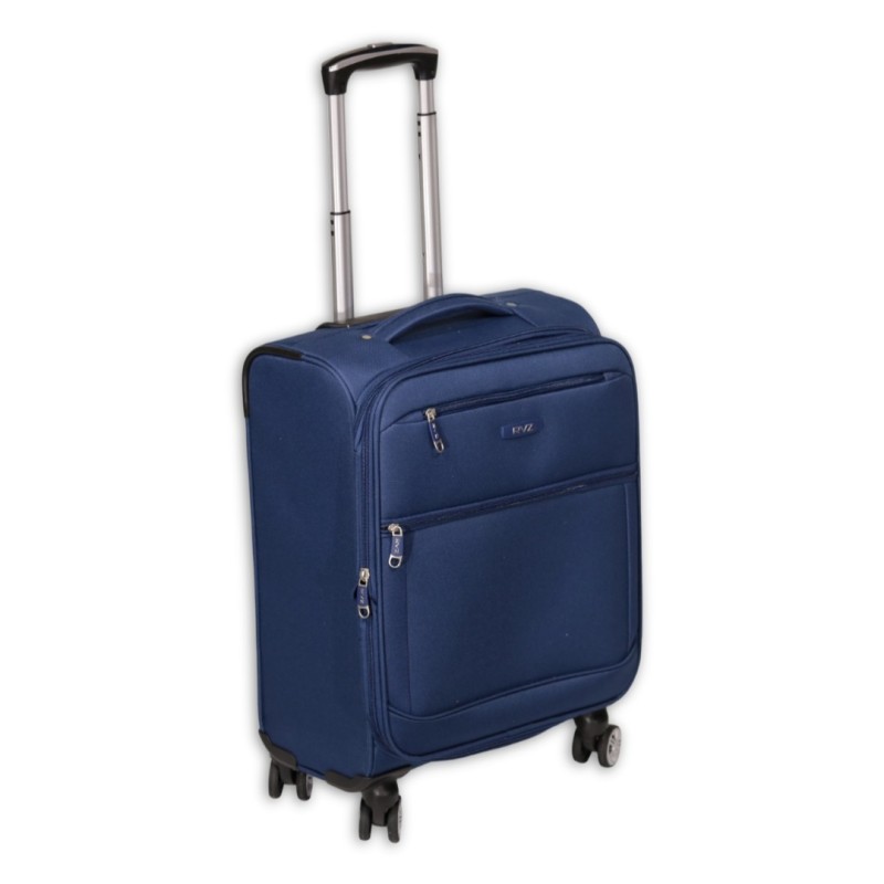 Trolley poliestere 4 ruote doppie, doppia tasca frontale, ampia tasca interna. Espandibile. Chiusura a combinazione.