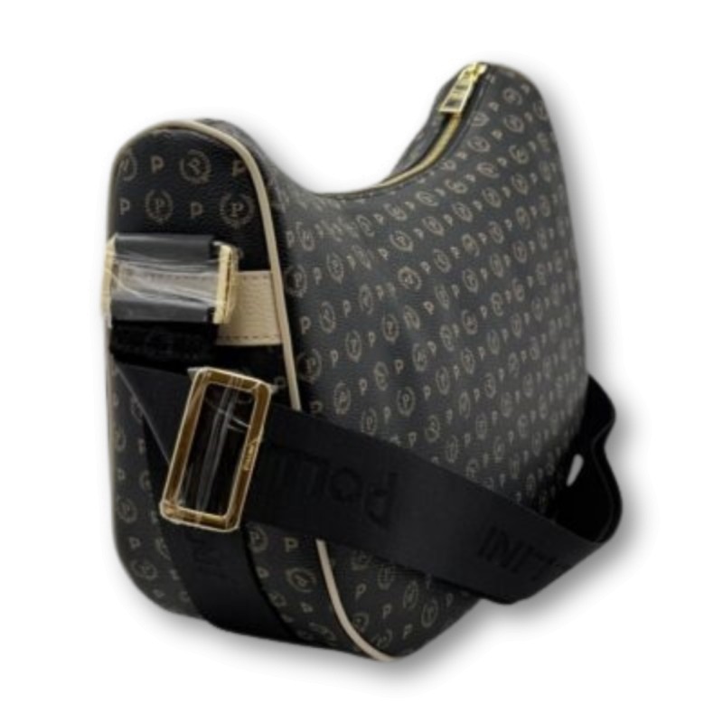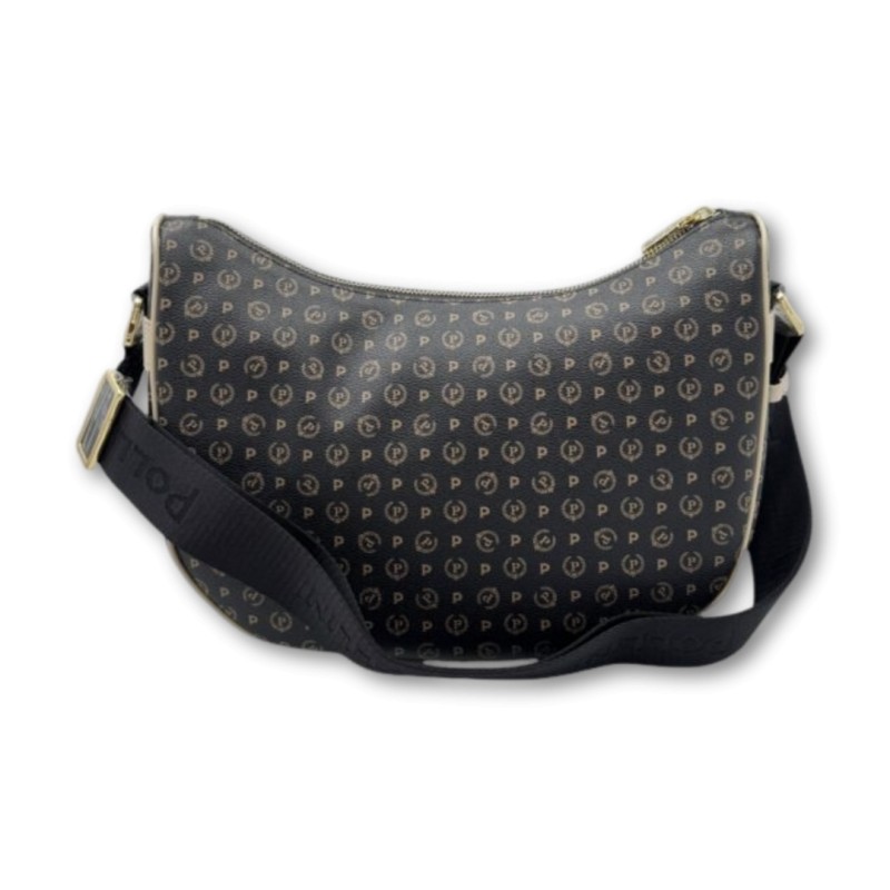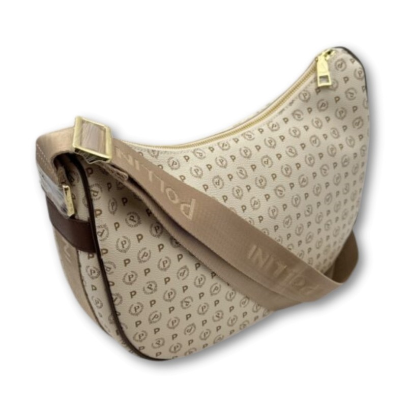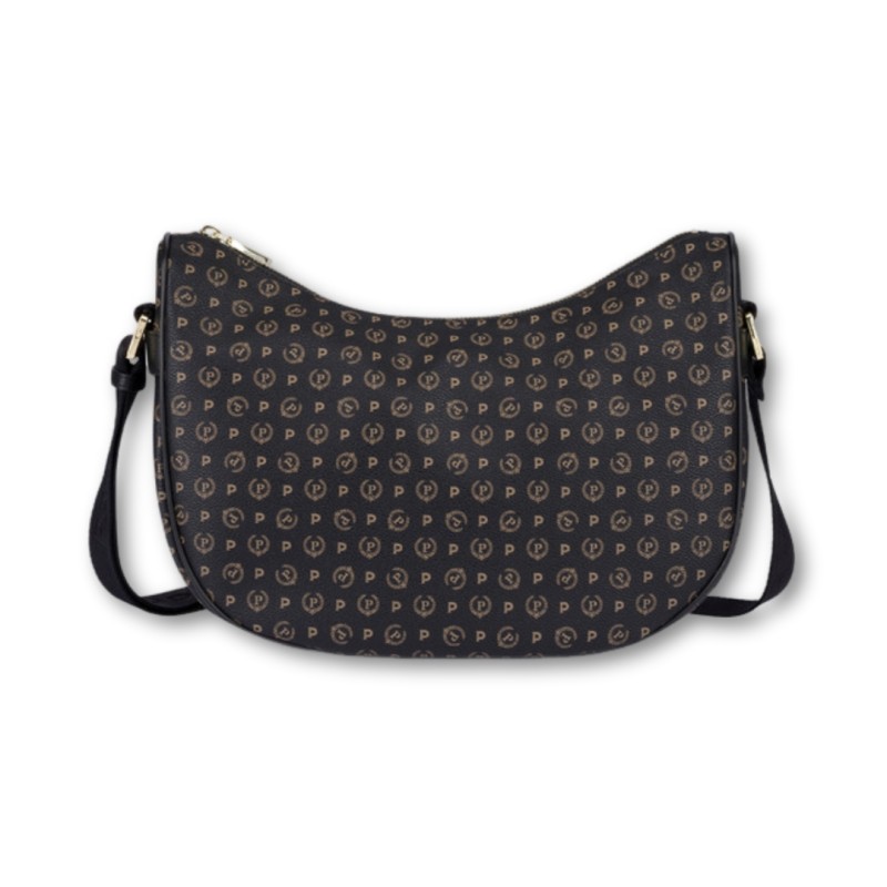 Hobo bag collezione Heritage PVC. L'iconico pattern all over dona un'allure elegante e senza tempo. Il nastro logato Pollini percorre tutto il fianco della borsa, trasformandosi in tracolla.