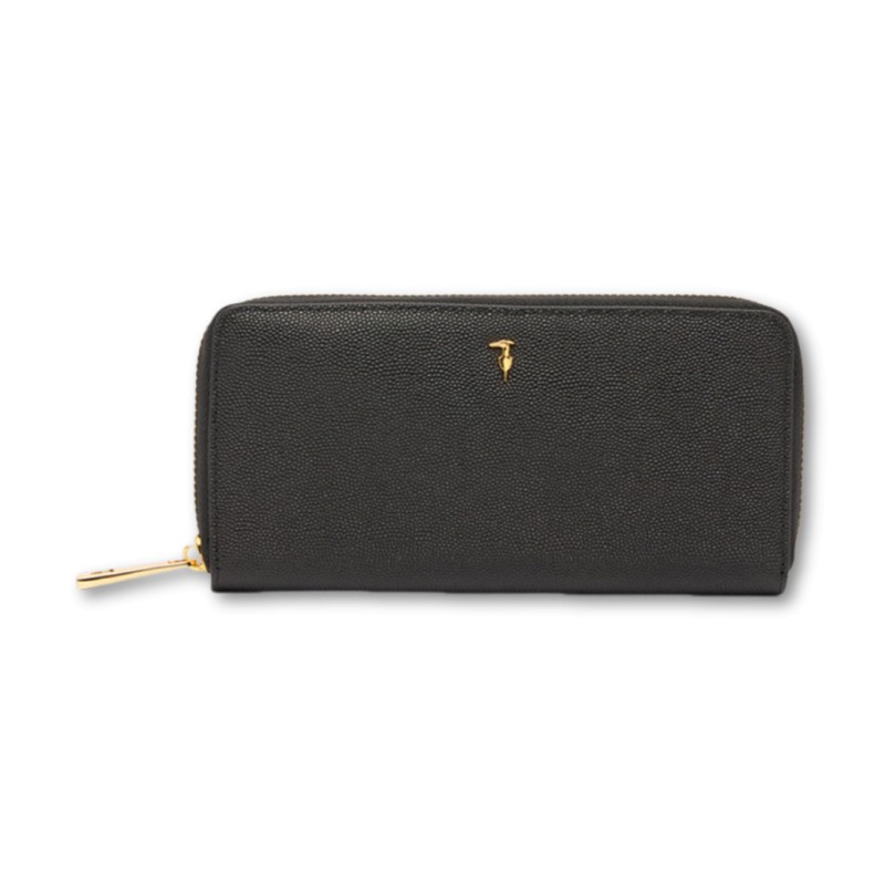 Stile e praticità si uniscono nel portafoglio zip around della linea Cameo. Realizzato in vera pelle grana riso, offre funzionalità con scomparti interni e portamonete. Il raffinato Levriero in metallo aggiunge un dettaglio distintivo, rendendo l'accessorio ideale per la donna dinamica che apprezza un design senza tempo.