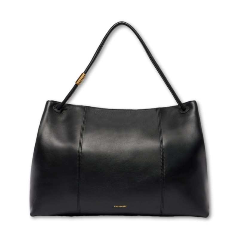 - Elemento gioiello oro sulla tracolla con scritta Trussardi