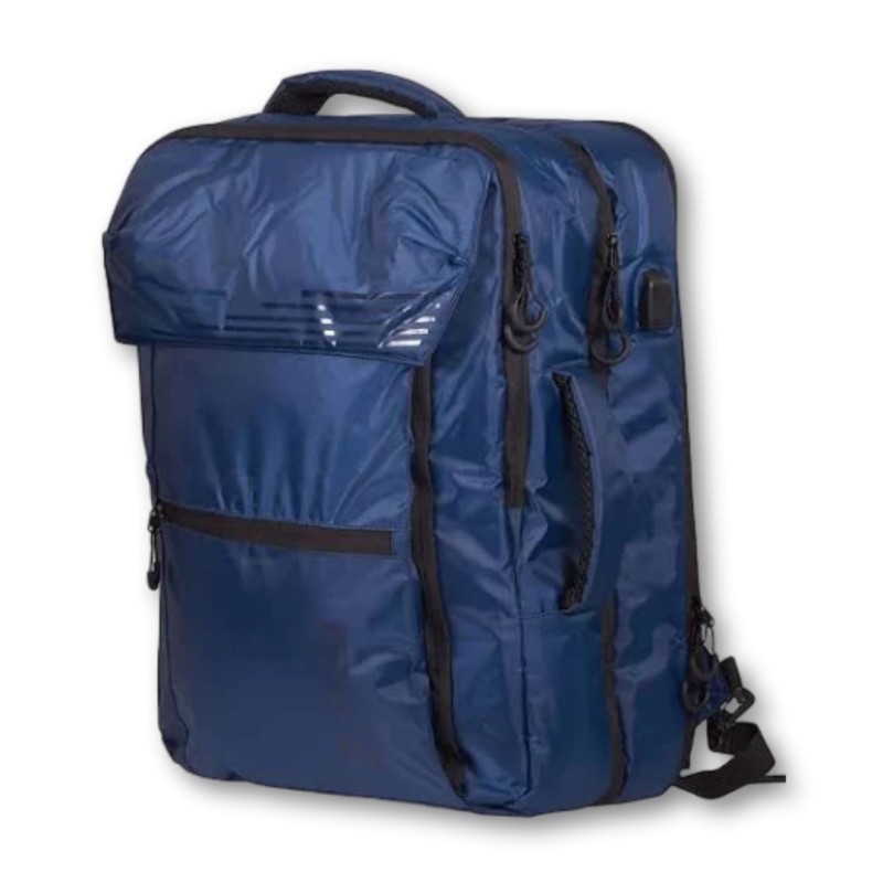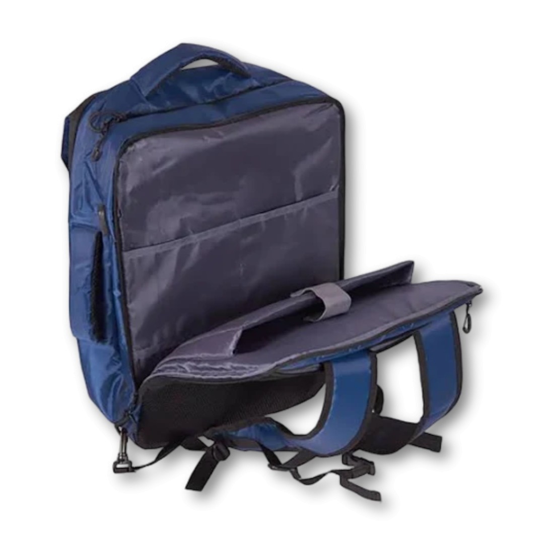 Include una cerniera antifurto, porta USB, tasca dedicata per laptop e fascia elastica per fissarlo al carrello trolley. L’interno è organizzato con scomparti per oggetti e indumenti.