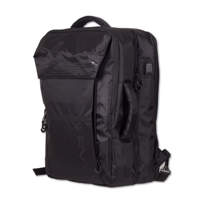 Include una cerniera antifurto, porta USB, tasca dedicata per laptop e fascia elastica per fissarlo al carrello trolley. L’interno è organizzato con scomparti per oggetti e indumenti.