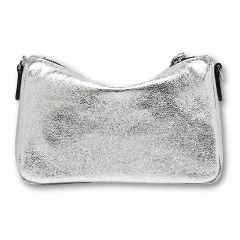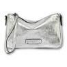 La borsa Nora Pouch by Gianni Chiarini Firenze è realizzata in suede arricchito da una lamina metallizzata. È dotata di un cinturino in pelle che permette di portarla al polso e di una tracolla regolabile, entrambi removibili. Presenta una chiusura con zip per una maggiore praticità.