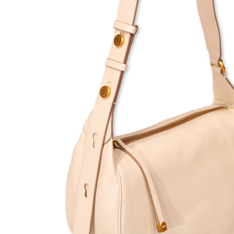 Charlotte è la nuova borsa a spalla in pelle dall'effetto vintage, dal design essenziale e una morbida silhouette hobo, perfetta per donne dinamiche che amano coniugare praticità e stile. Dotata di un ampio scomparto principale con zip e tirazip in pelle con dettagli metallici, offre funzionalità senza rinunciare all'eleganza. Il manico regolabile consente una portabilità versatile, rendendola un accessorio ideale per ogni occasione.