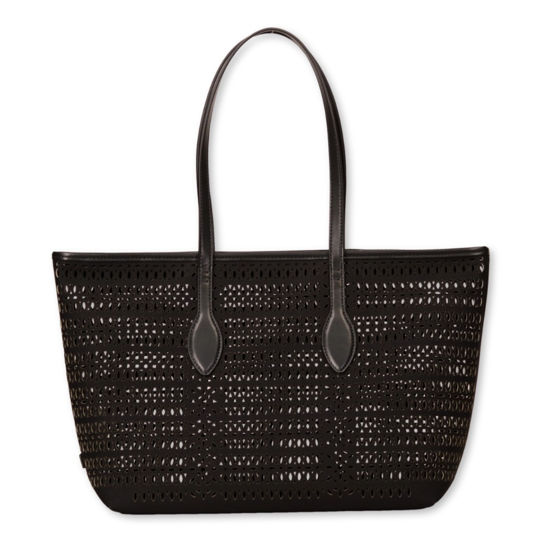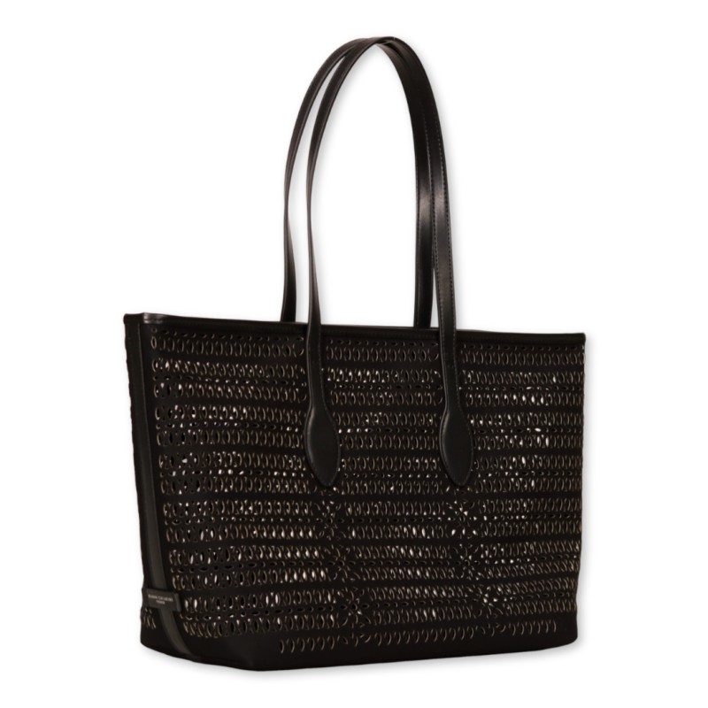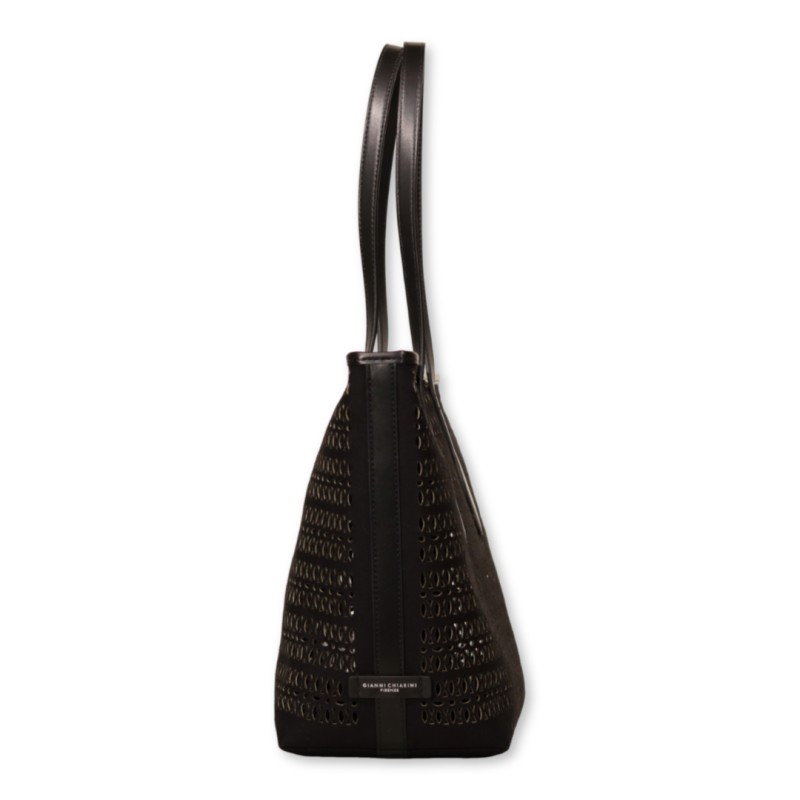 La shopper Mashup di Gianni Chiarini Firenze è realizzata in canvas laserato, che dà vita a un sofisticato decoro traforato, rendendola unica e senza tempo