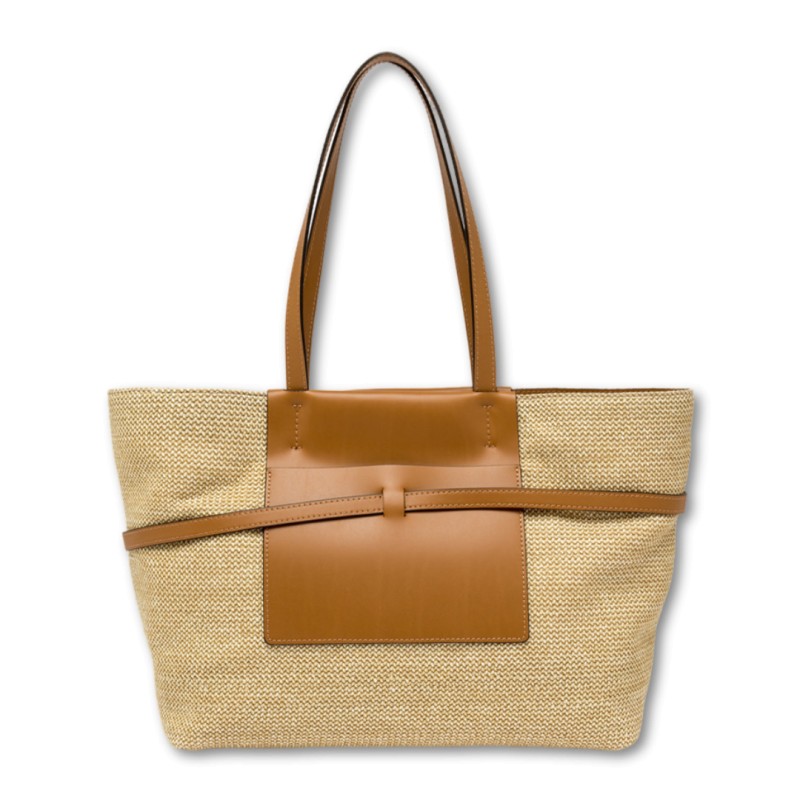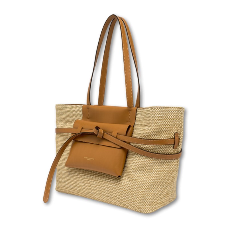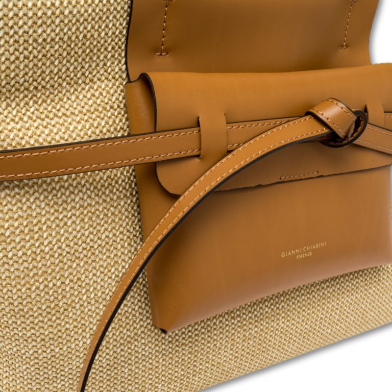 Belty è la nuova shopper bag firmata Gianni Chiarini Firenze, realizzata in paglia e arricchita da dettagli in pelle. Il dettaglio distintivo è il laccio che avvolge la borsa come una cintura, creando un elegante nodo decorativo sul davanti. Dotata di manici superiori, è perfetta per un utilizzo daily