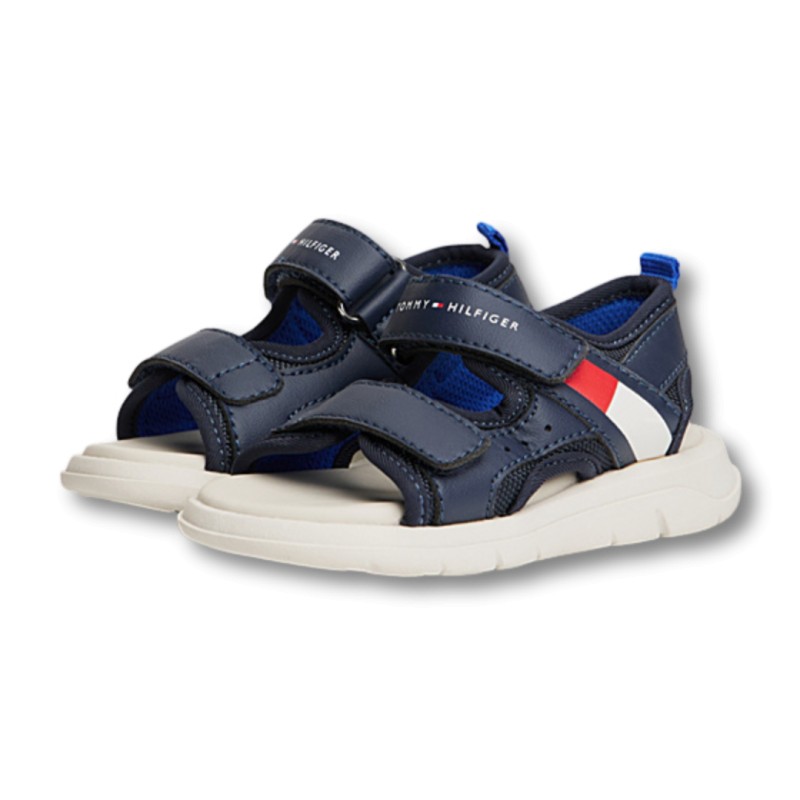 I sandali con bandierina sono dotati di suola spessa e di due pratiche fascette a strappo, per avventure estive in pieno comfort e stile.