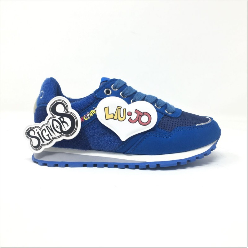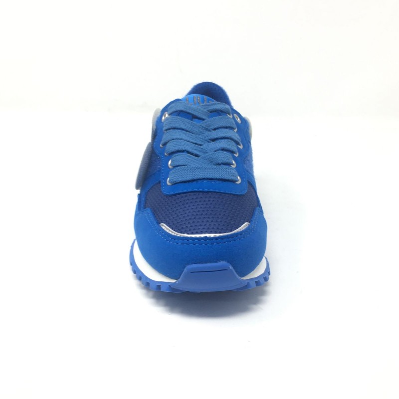 Sneakers Liu Jo Me Contro Te:Sneakers realizzate in microfibra effetto scamosciato color blue con inserti in mesh e velcro. Chiusura con lacci sur tone blue. Il modello presenta una comoda suola dentellata in gomma e sette patch removibili con i personagg