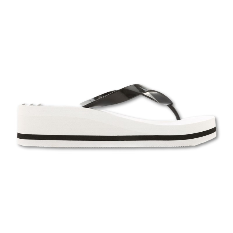 Infradito Con Zeppa: Infradito in PVC con zeppa e soletta stampata.