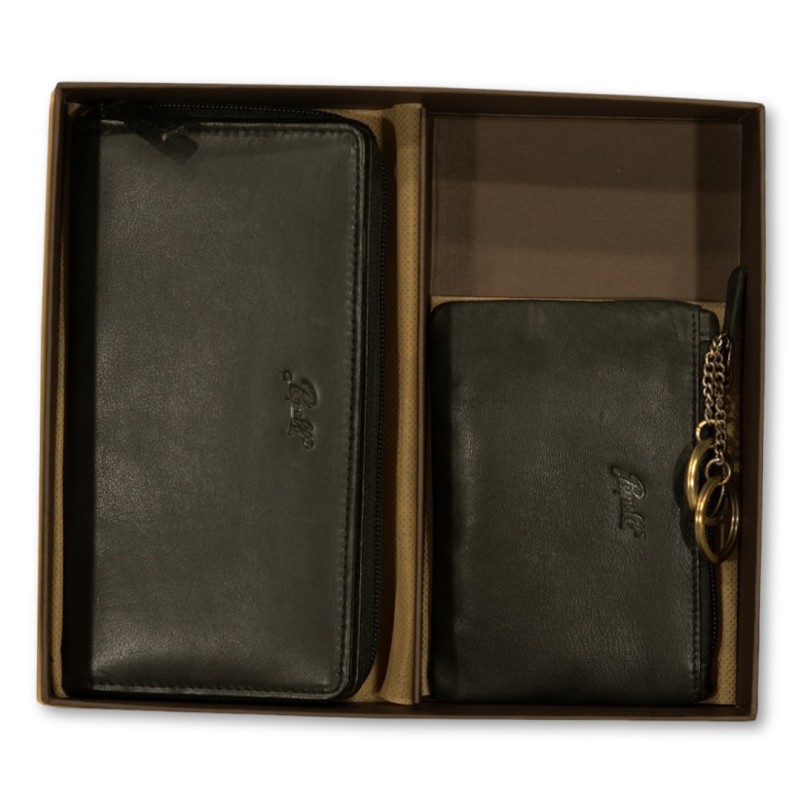 Set Portafoglio + Portachiavi con zip  linea "Born Soft" in vera pelle nappata morbida al tatto, in confezione regalo.