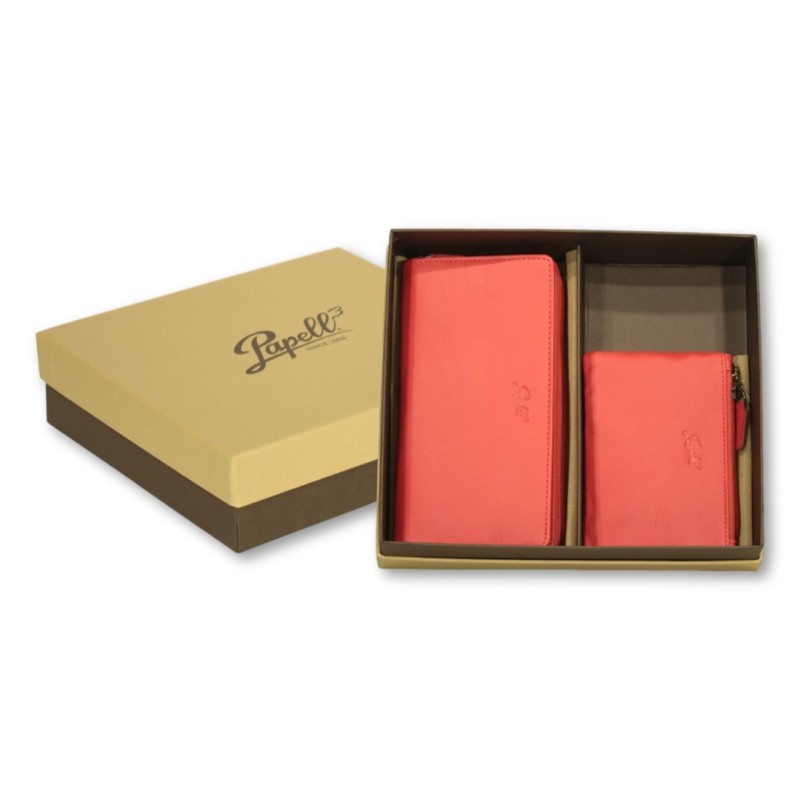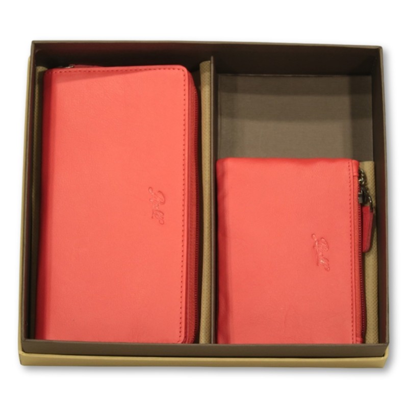 Set Portafoglio + Portachiavi con zip  linea "Born Soft" in vera pelle nappata morbida al tatto, in confezione regalo.