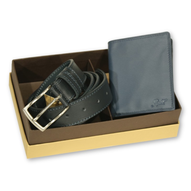 Set Portafoglio + Cintura linea "Born Soft" in vera pelle nappata morbida al tatto, in confezione regalo.